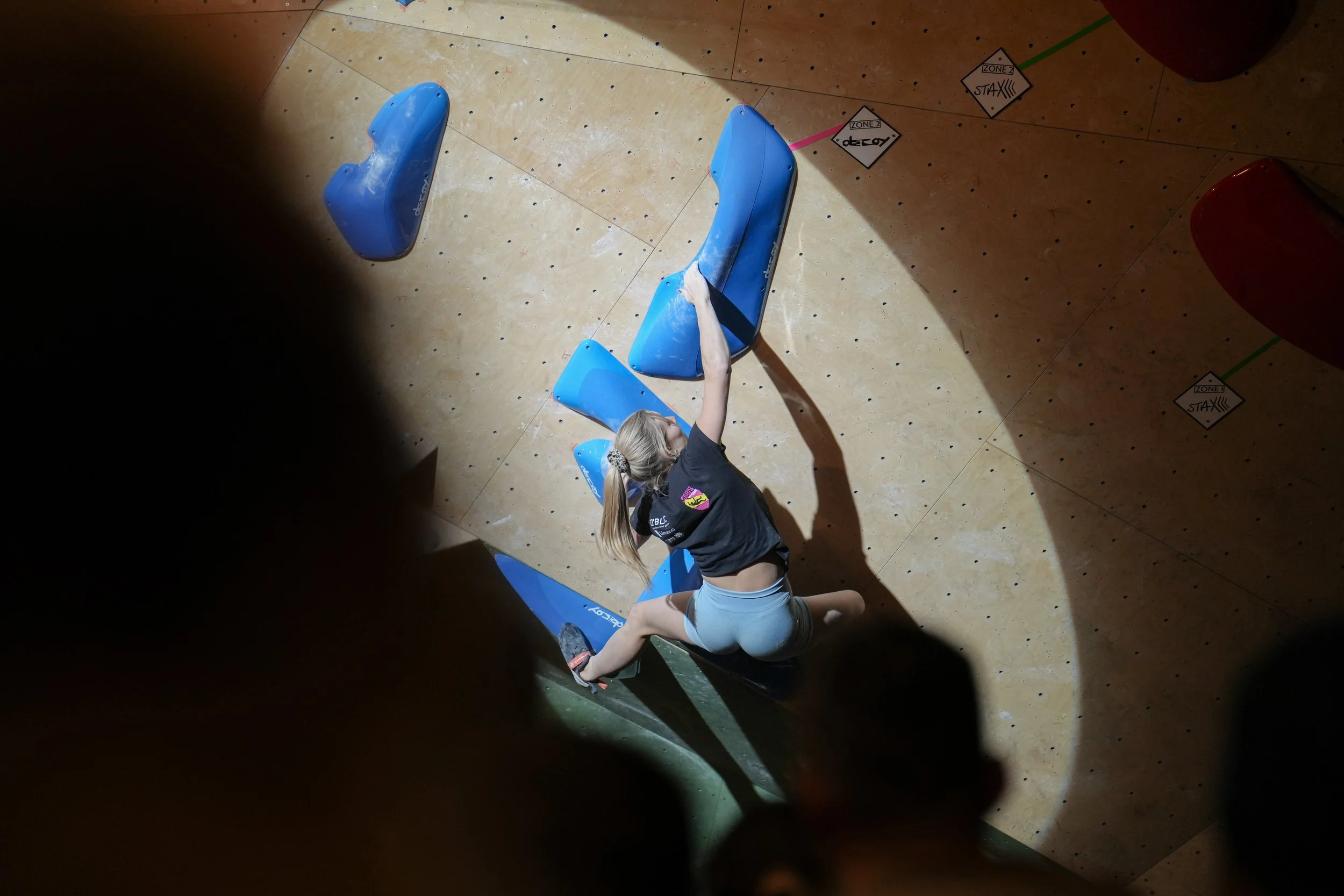 Bouldering is a type of climbing that’s easy to start if you have not climbed before - it is rock climbing stripped down to its pure essentials. You can jump right in, no hassle with ropes or required courses. The walls are up to fifteen feet high and outfitted with thick cushy pads below to keep you safe. Your challenge is to climb short but tricky bouldering "problems" (a route, or sequence of moves) using balance, technique, strength, and your brain (“problem solving").